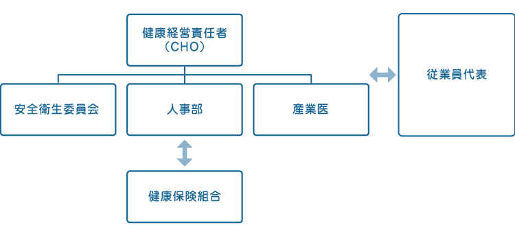 社員一人ひとりが心身ともに健康で、いきいきと働くことができる職場環境づくりを重要な経営課題のひとつと考え、「健康経営」に取り組むことをここに宣言します。